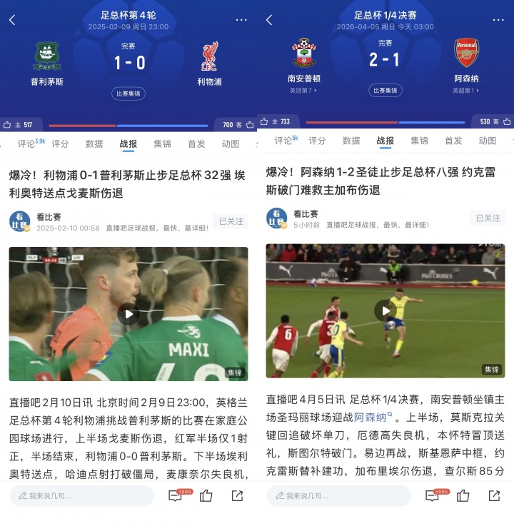 上赛季足总杯同样爆出冷门,英冠垫底的普利茅斯1-0击败英超第1名利物浦,红军止步足总杯32强。